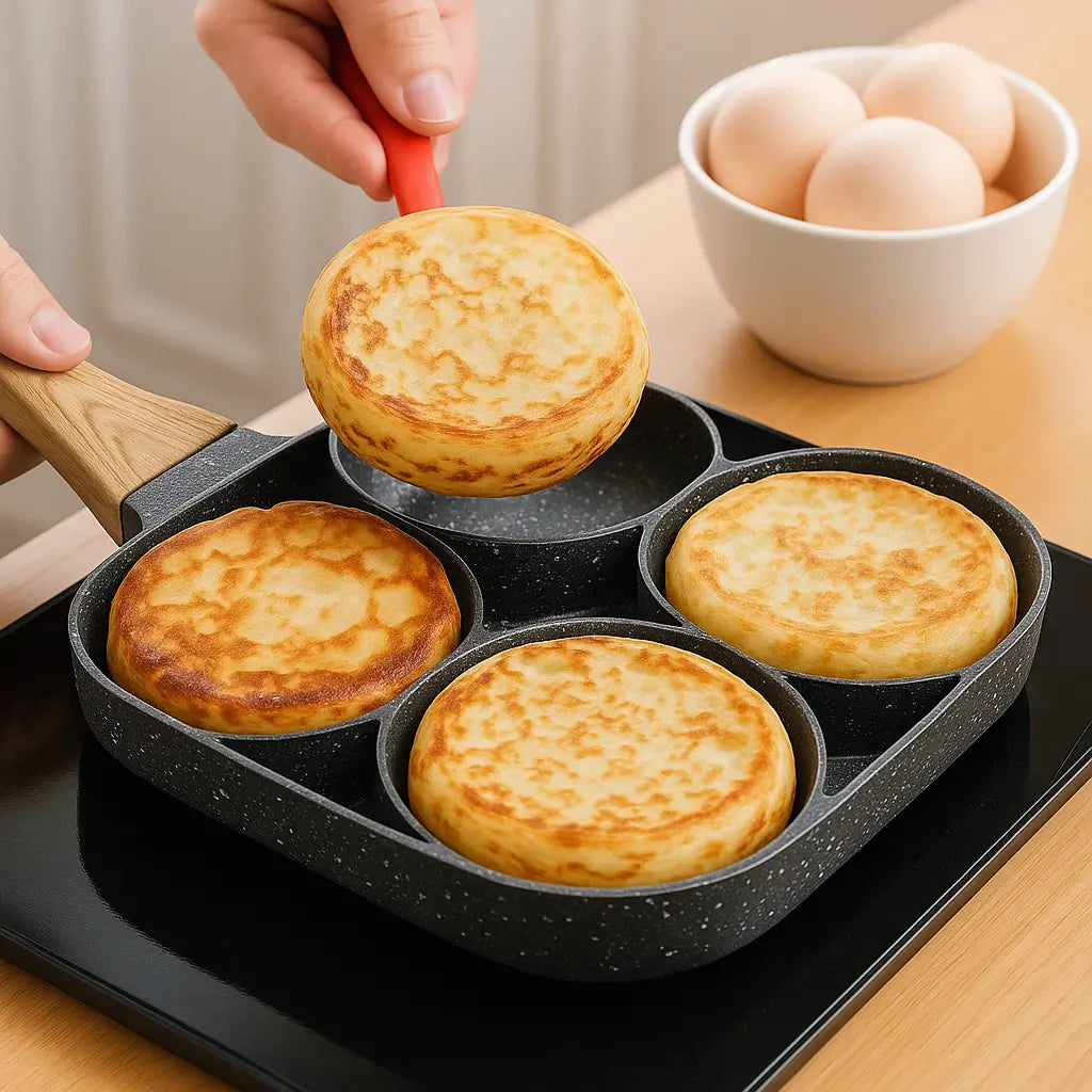 Transforme seu café da manhã ou qualquer refeição do dia com mais agilidade, saúde e organização usando a Frigideira Antiaderente 4 em 1 Multiuso.
