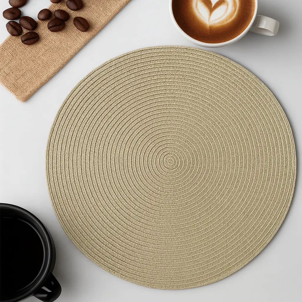 O Jogo Americano Redondo Sousplat une charme e praticidade na hora de servir. Feito em material sintético com superfície tramada, adiciona um toque moderno e acolhedor à mesa.