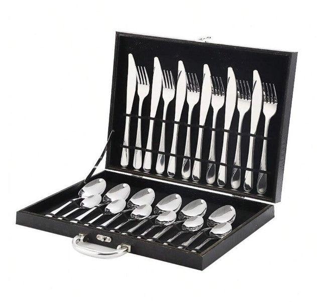Jogo de Talheres 24 Peças em Aço Inox com Maleta – Sofisticação e Durabilidade para sua Mesa