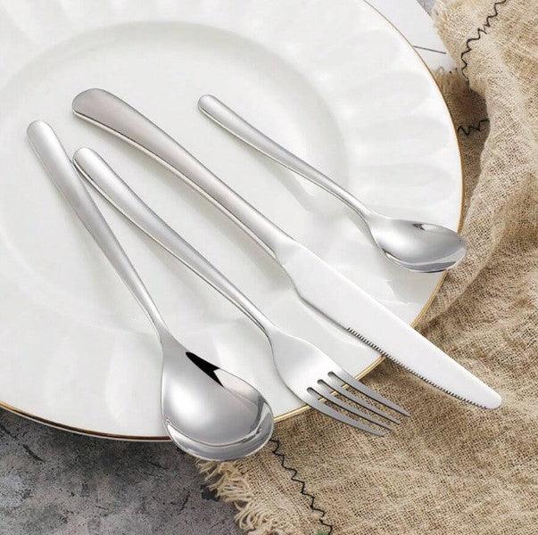 Com linhas ovaladas e acabamento acetinado, os talheres possuem um design minimalista e sofisticado, ideal para qualquer estilo de mesa.