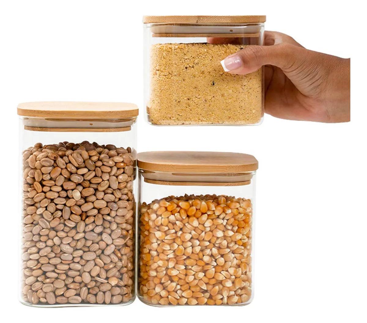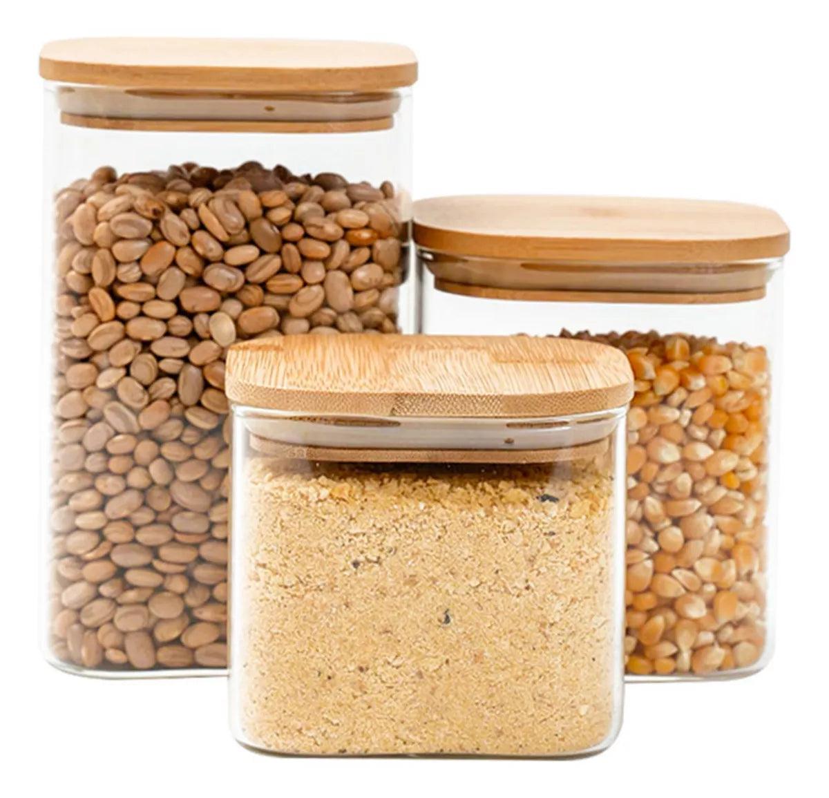 Descubra a combinação certa entre design sofisticado e funcionalidade para conservar seu mantimentos com o esses Potes Herméticos de Vidro com Tampa de Bambu.