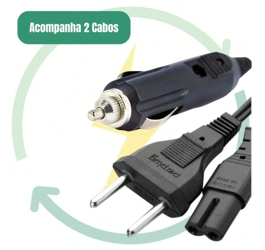 - 2 Cabos de alimentação bivolt - tomada comum e isqueiro veicular