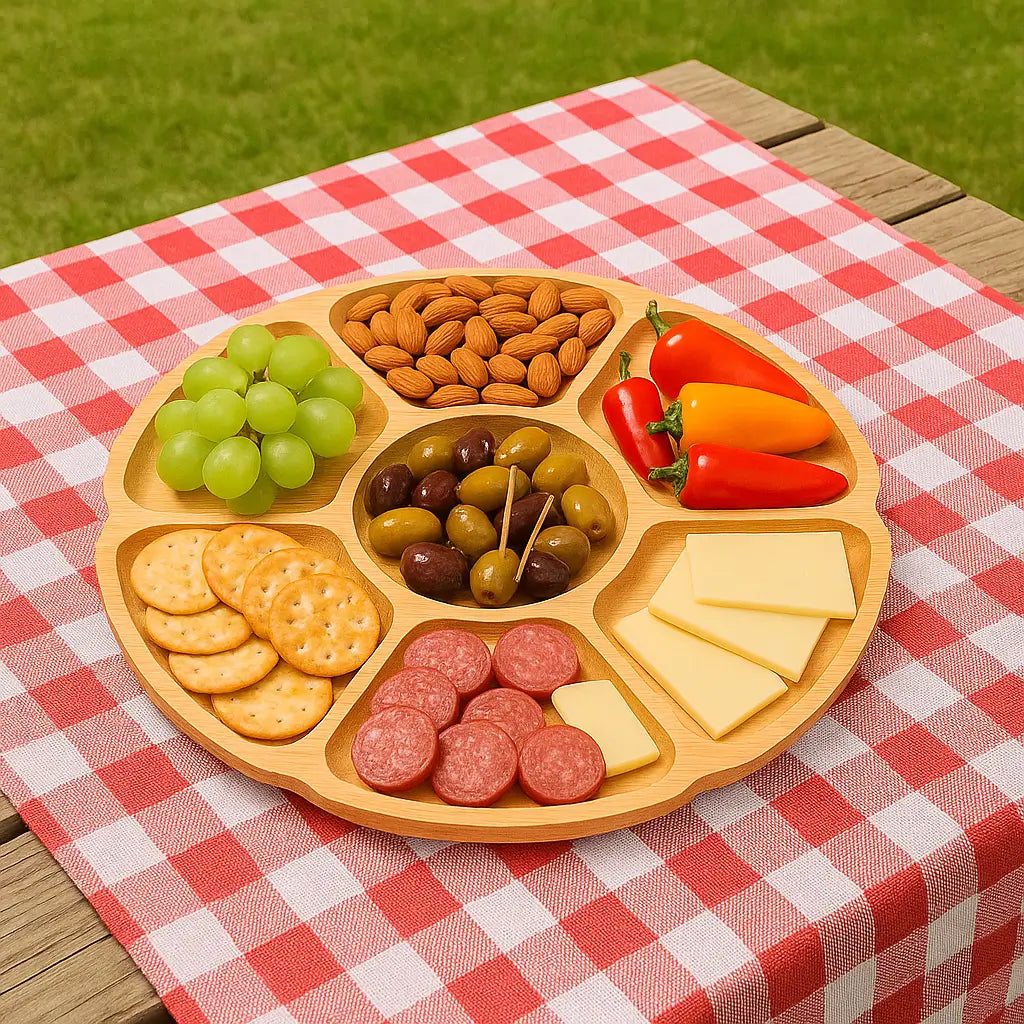 Transforme Seus Momentos de Descontração em Únicos com a Petisqueira em Bambu Com 7 Divisórias Petisca!
