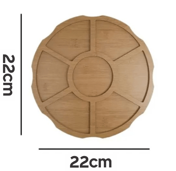 Feita com bambu de alta qualidade, essa petisqueira não é só linda, mas também super funcional. Com 7 divisórias — 6 para petiscos e 1 central para molhos — ela é o toque final para uma mesa impecável.